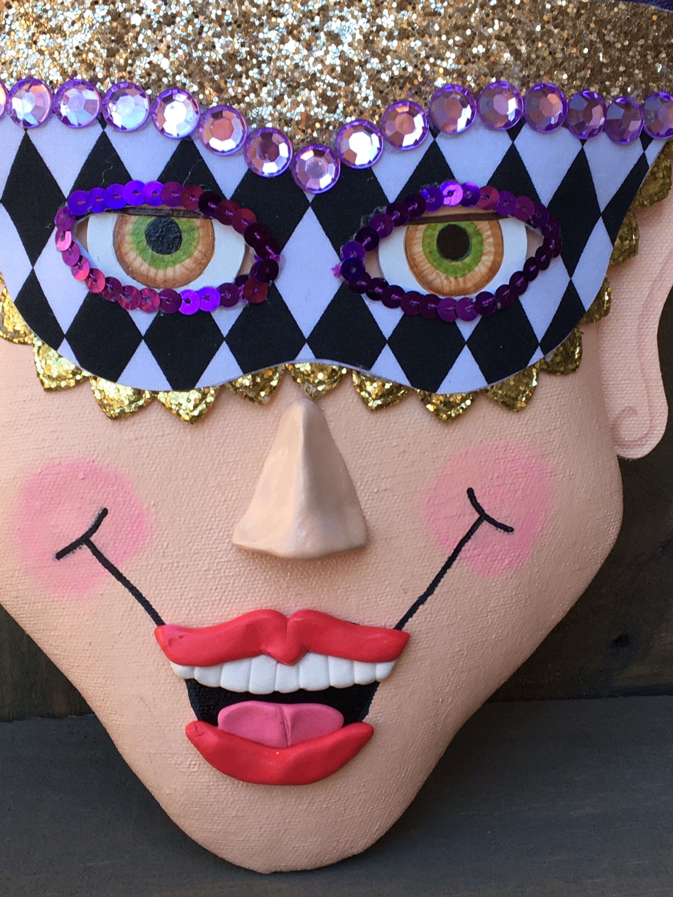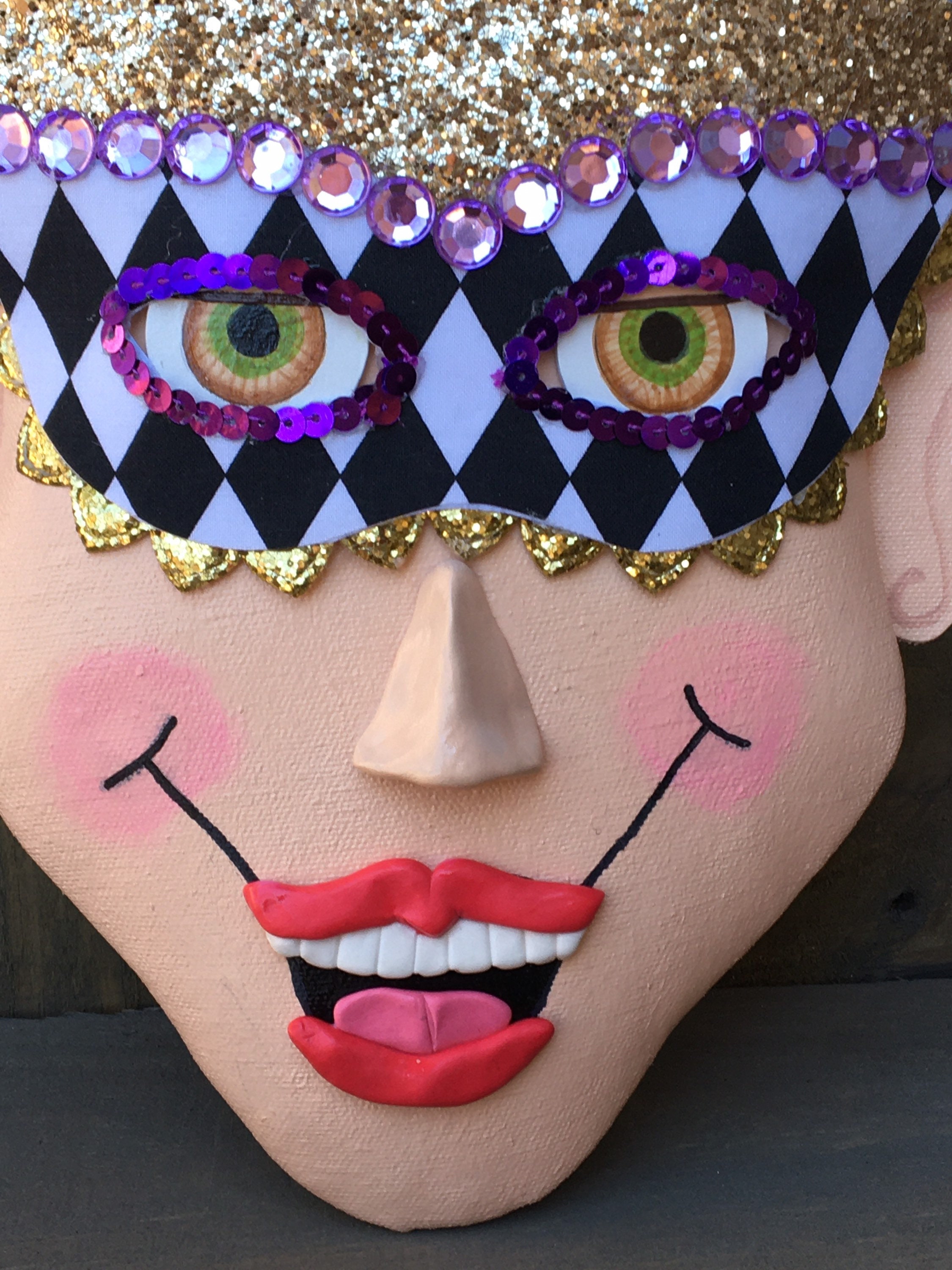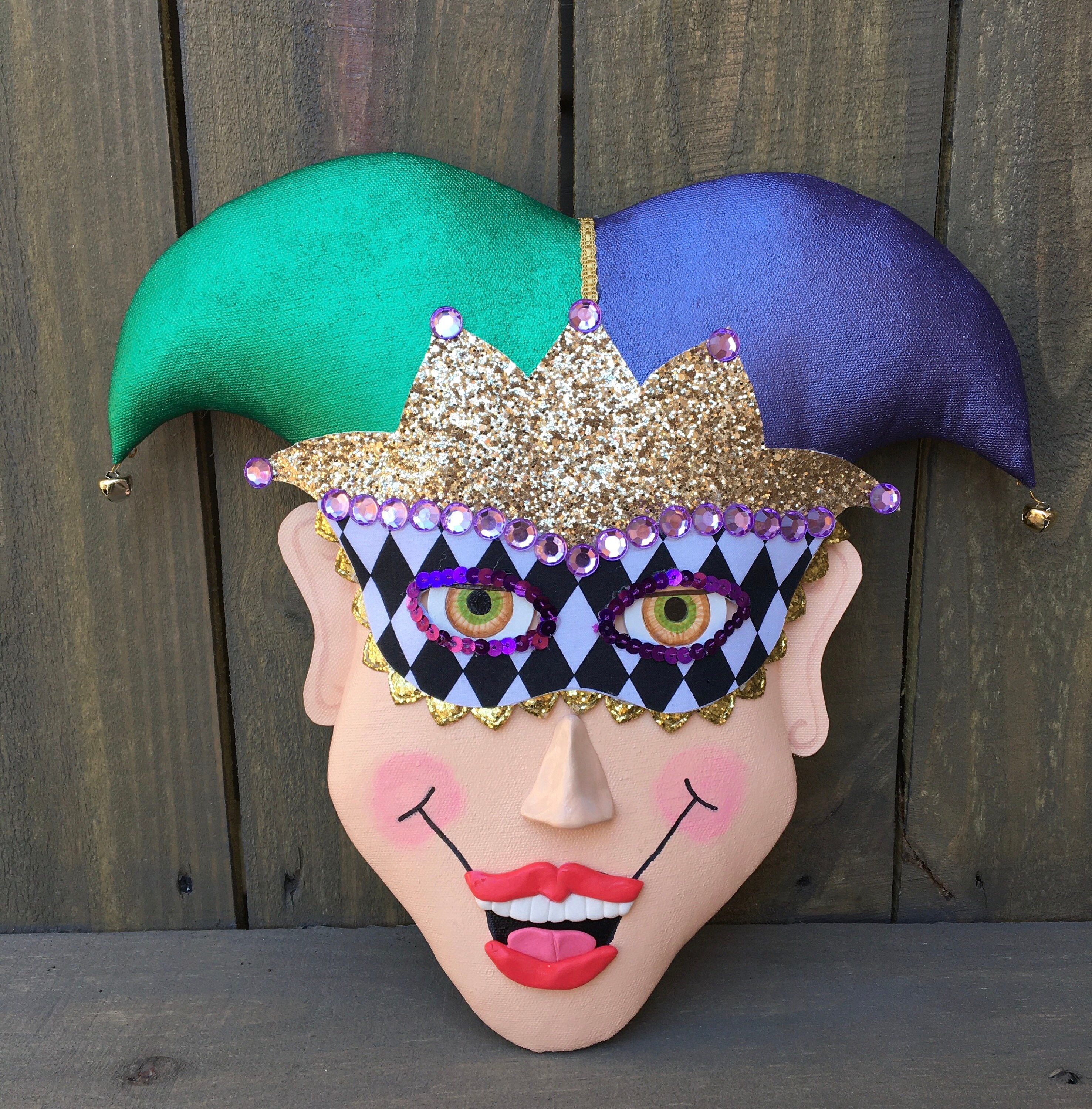 Mardi Gras Wreath Attachment, Jester Head , Venetian Mask , Fat Tuesday Jester Head