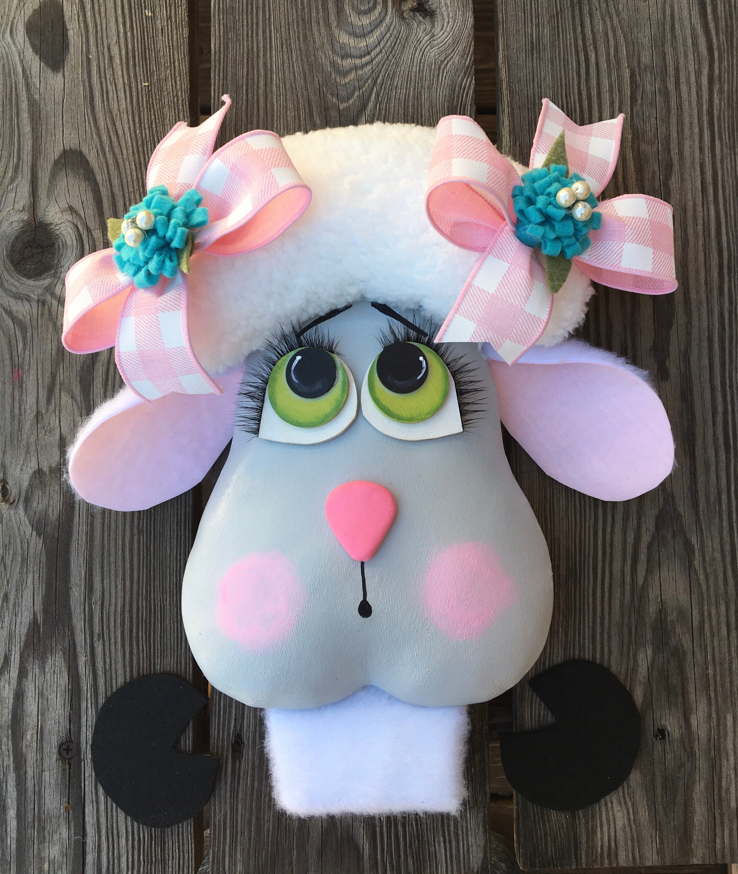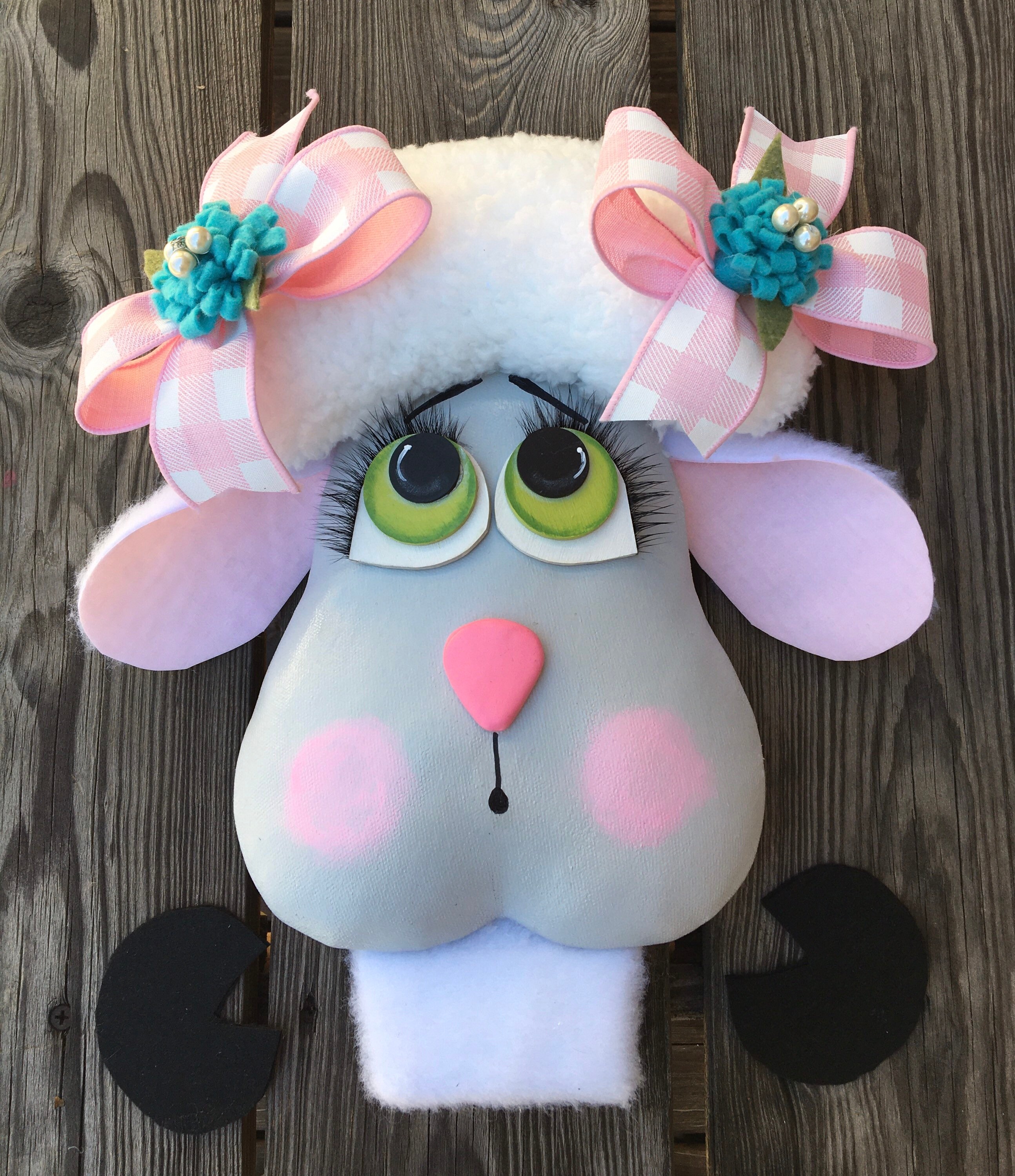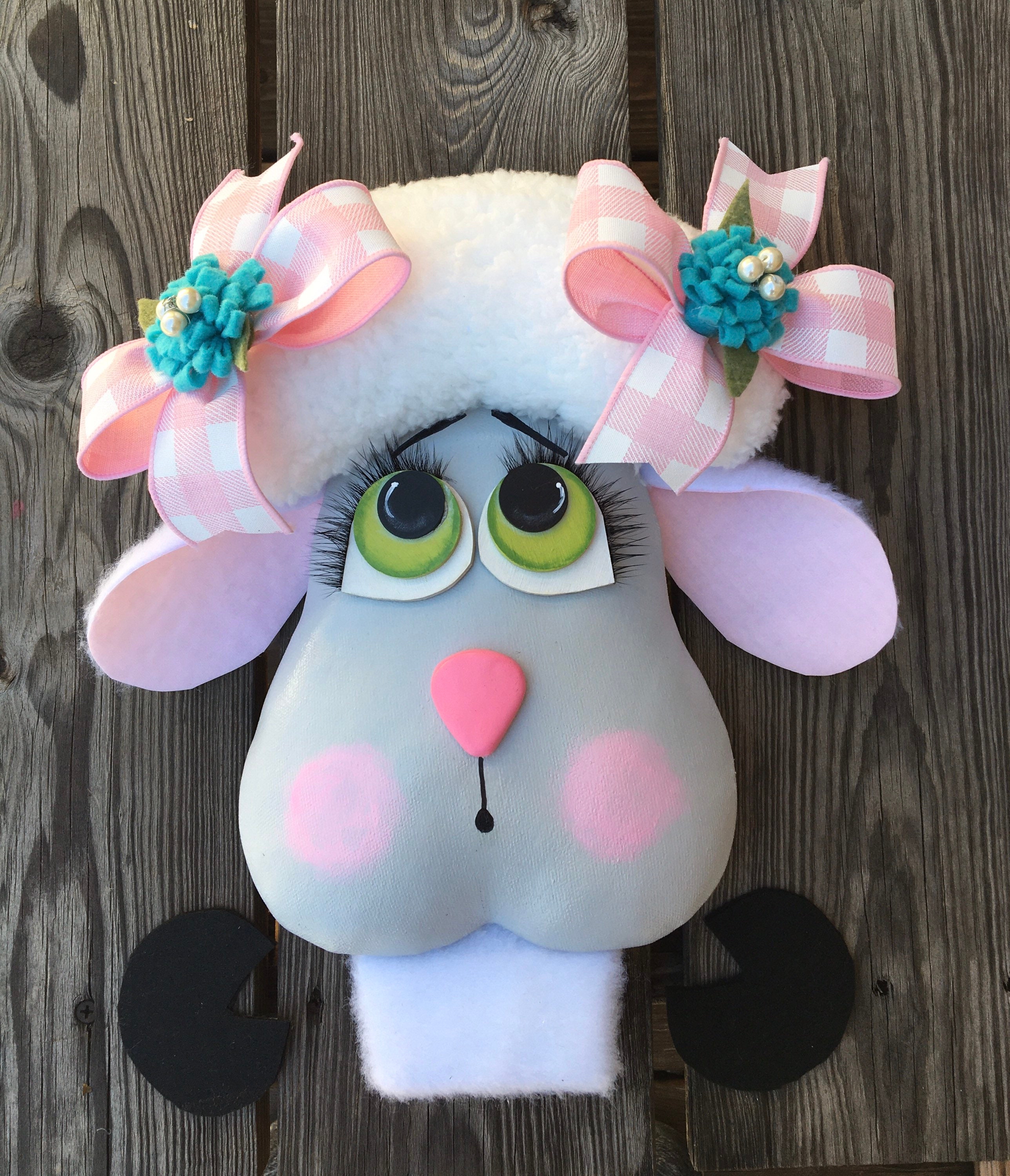 Lamb Wreath Attachment, Easter Lamb , Spring Wreath, Baby Announcement Attachment, 3 D Character Head, Easter Decor, Spring Decor , Lamb