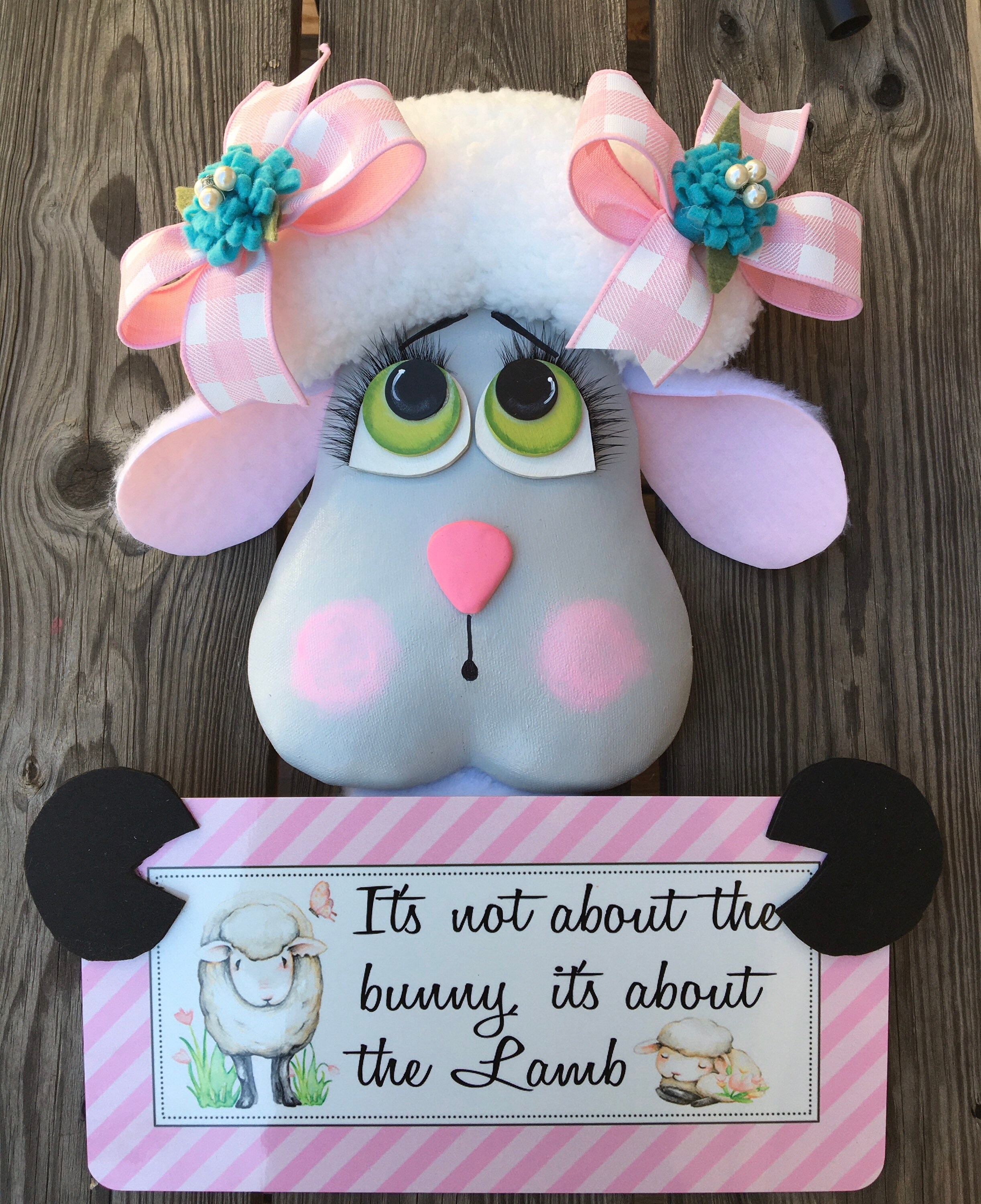 “Silly Rabbit Easter is about the Lamb “ This adorable 3D wreath attachment will make the perfect embellishment for your Spring wreath or for a Baby announcement wreath . Sign not included. Sign is for positioning only Sign is from Janes Front Door . This adorable Easter Lamb measures 13 inches long , 11 inches wide and 3 inches thick. It is easy to attach to a wreath or garland.